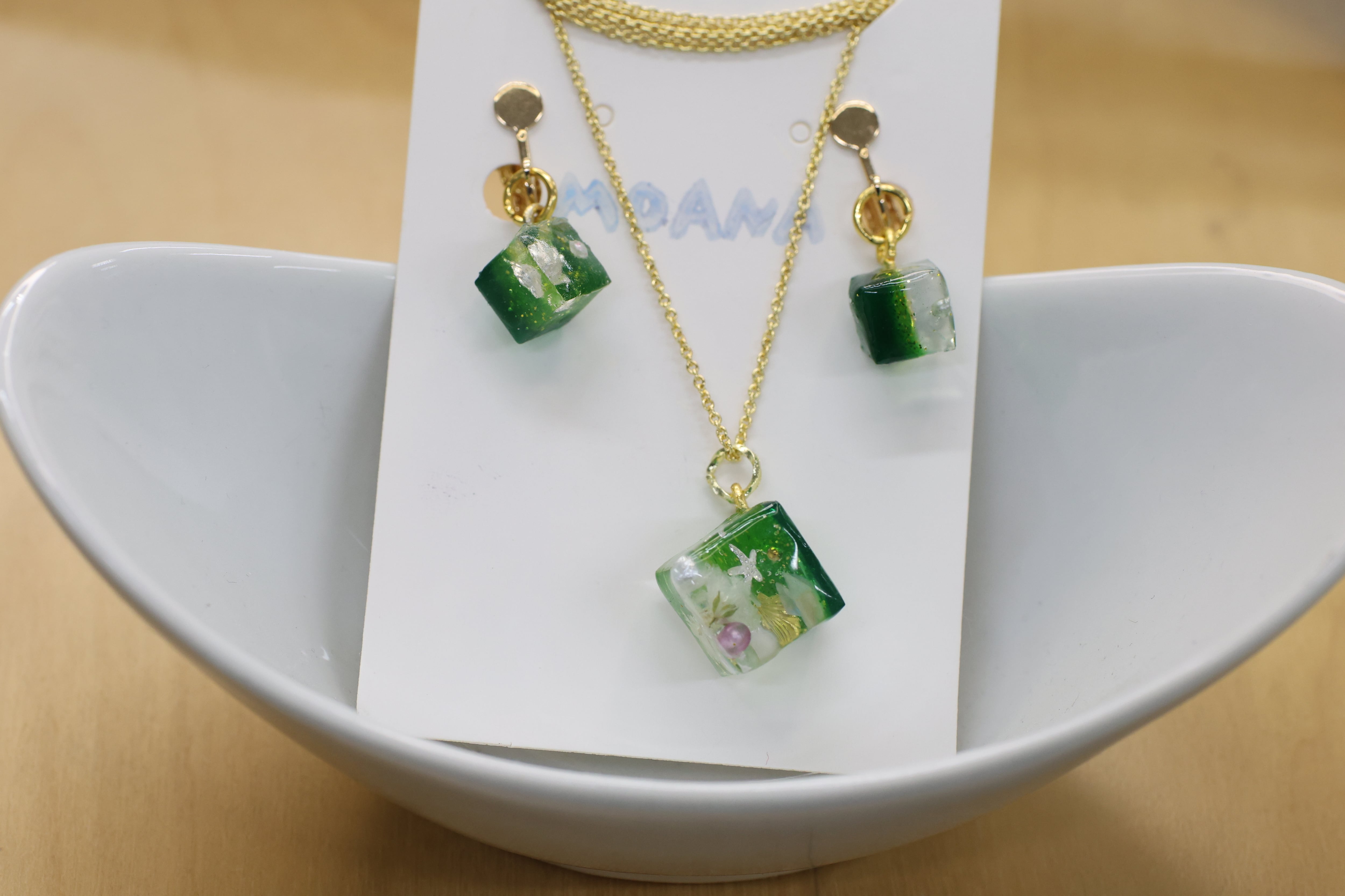S-9 四角のネックレスとイヤリングのセット