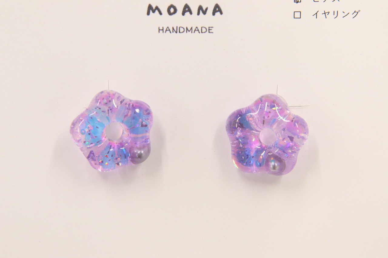 紫色のラベンダーの匂いがしそうな花型の可愛らしいピアスです。