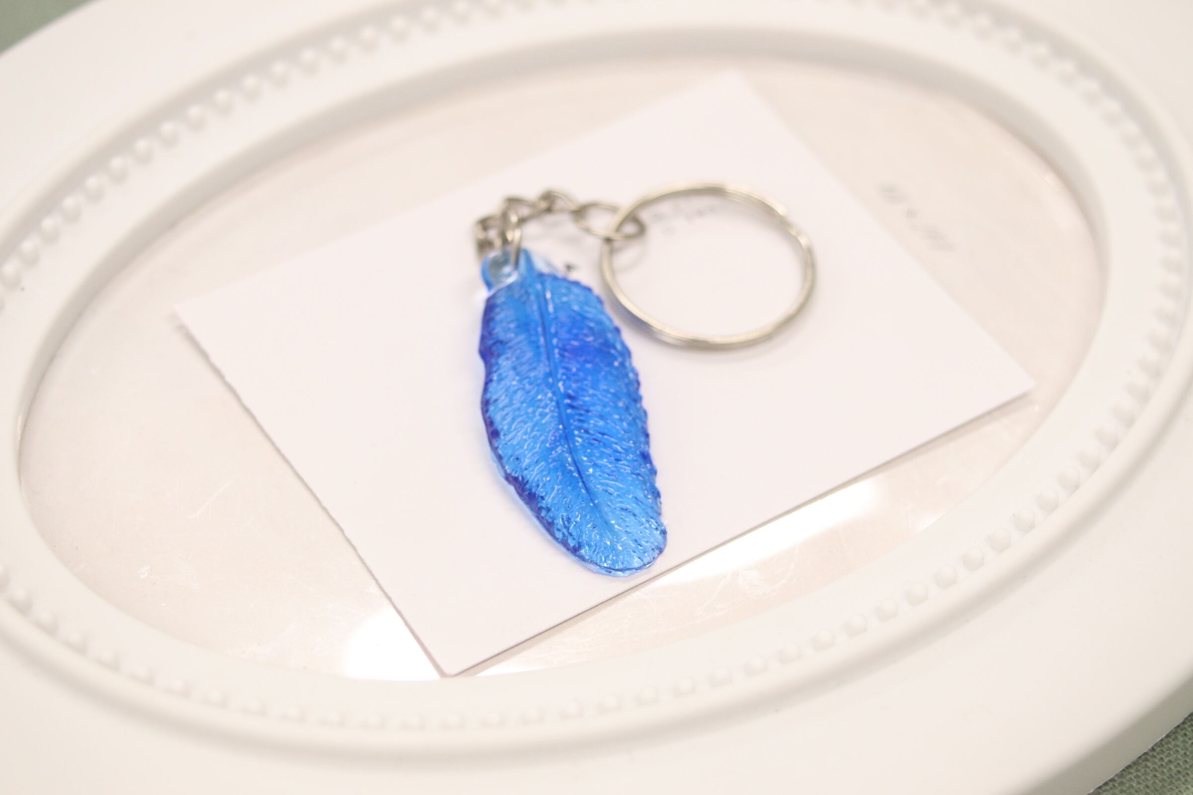 青い羽根のキーホルダーです。