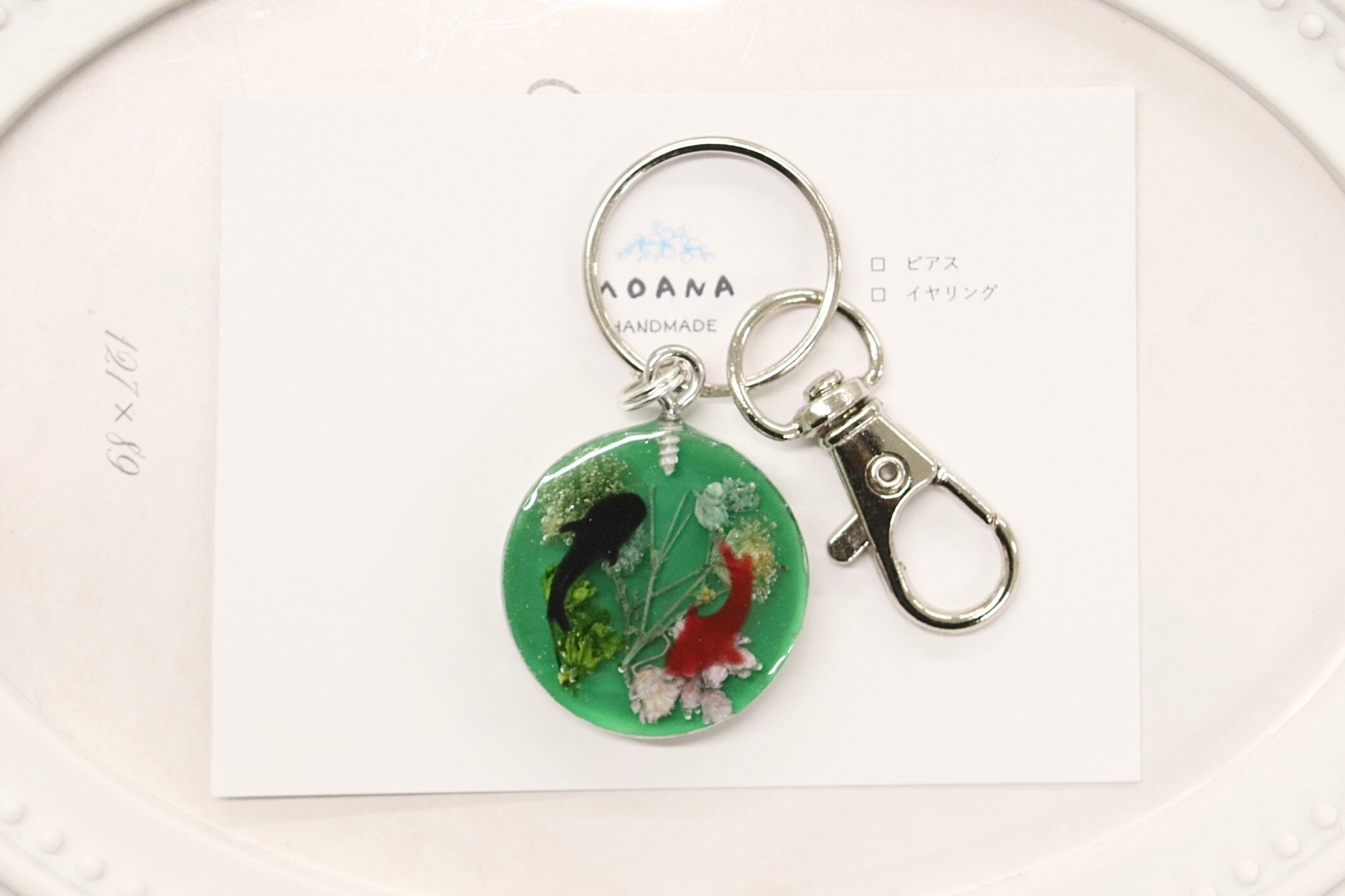 池を泳ぐ鯉のキーホルダーです。