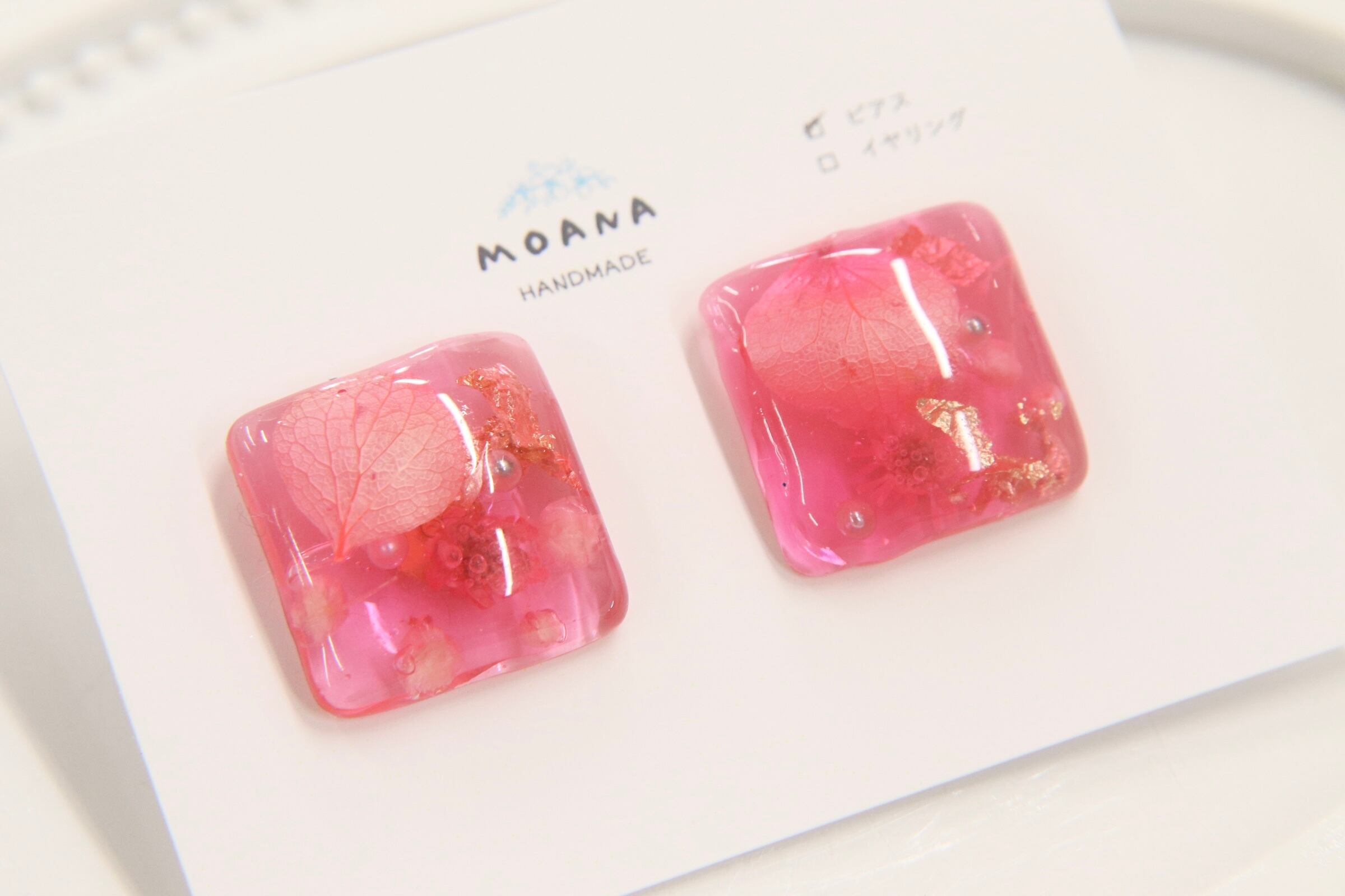 ピンクの花達が可愛らしいティータイムなどお茶会につけて行くのにおすすめなアクセサリーでございます。