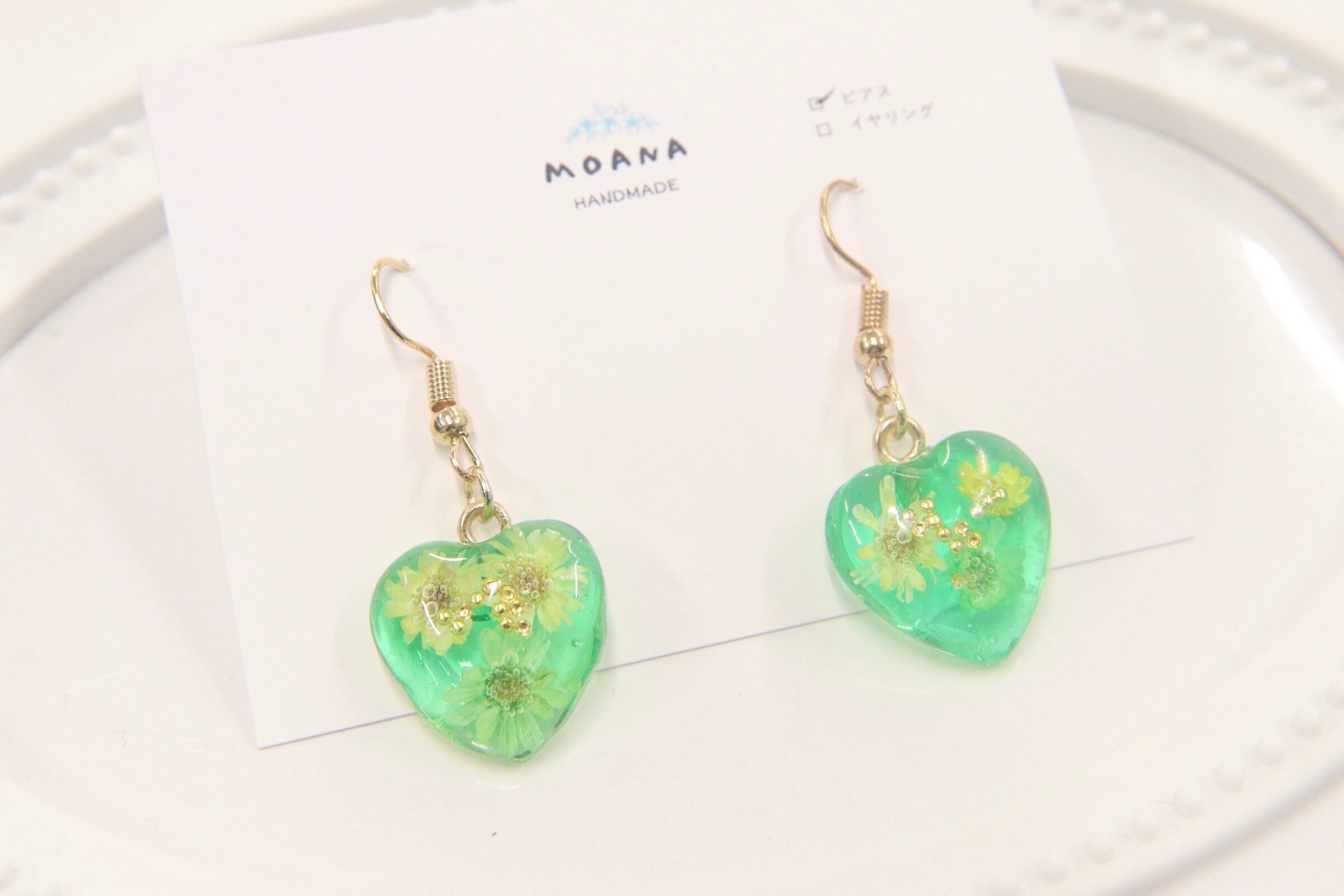スライムの中に花が咲いた物をハード型に加工した様な不思議なピアスでございます。