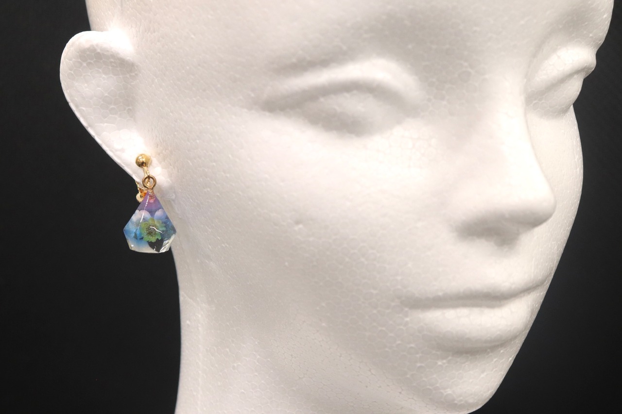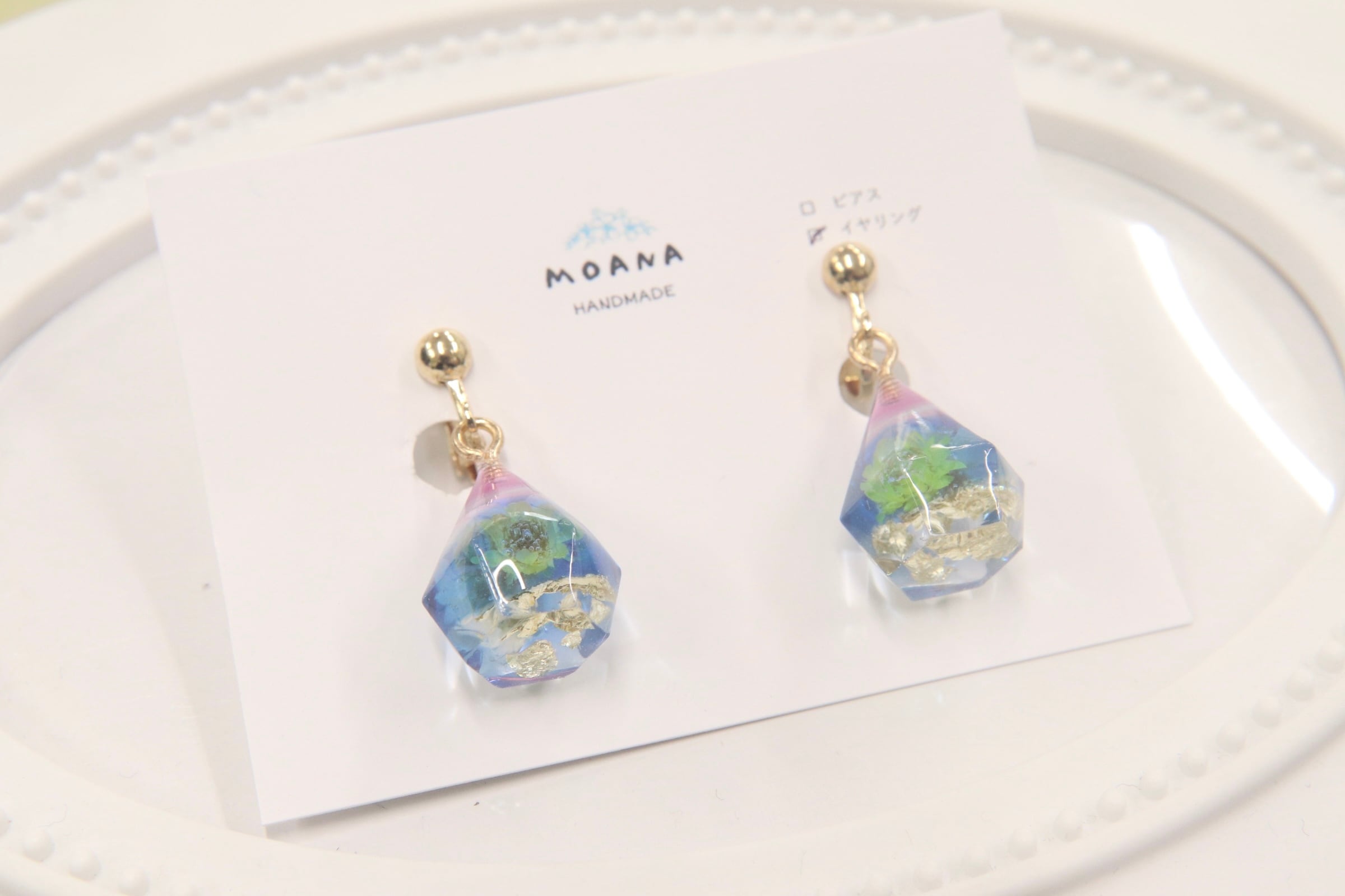 朝日になびくひまわりを水晶にして閉じ込めたかの様な幻想的なイヤリングです。