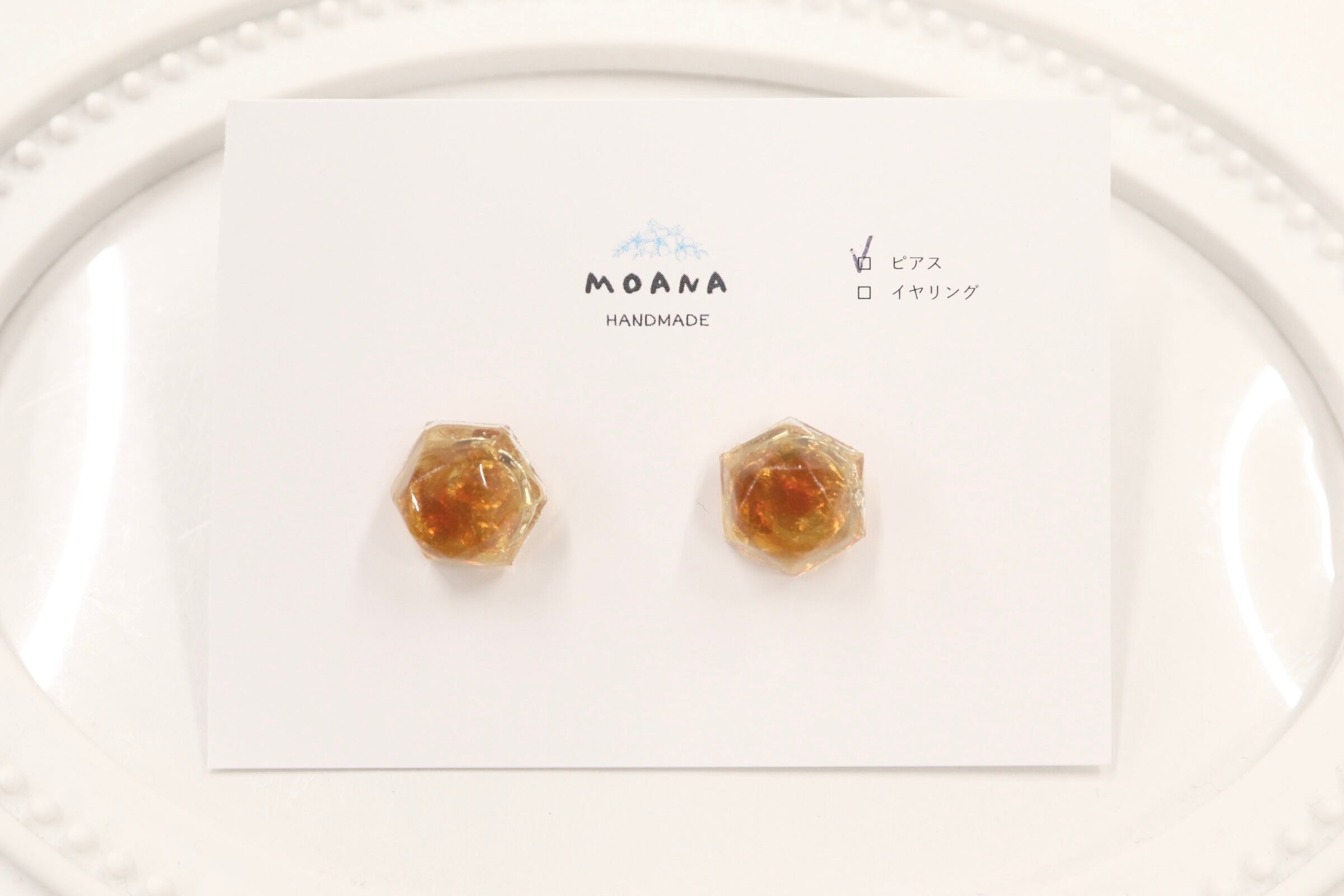 小さなべっこう飴を加工して透き通る宝石に加工したようなアクセサリーです。