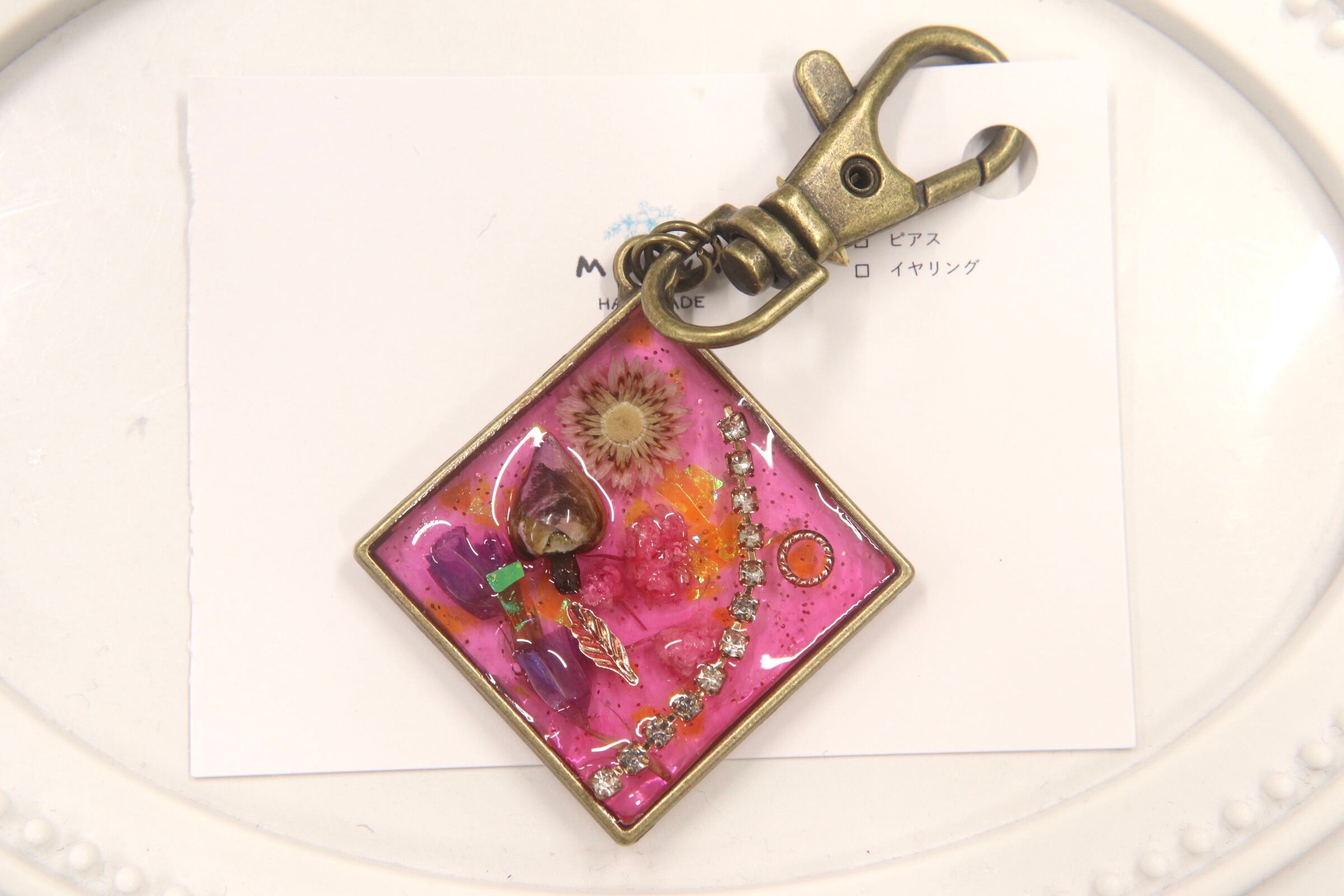 ピンクに色んな花達が可愛らしいアンティーク系のキーホルダーです。