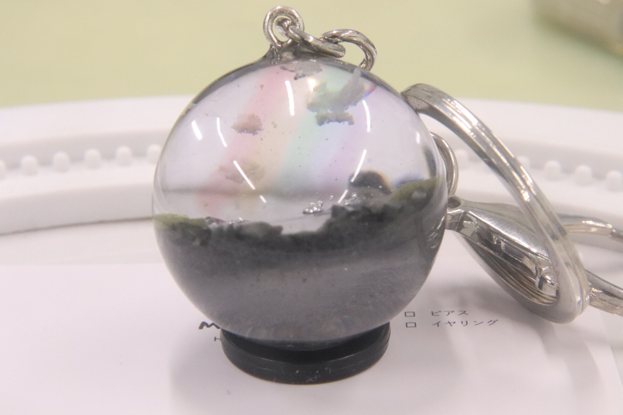 ビー玉で帰り道を除いた瞬間をくりぬいたような、キーホルダーです。
