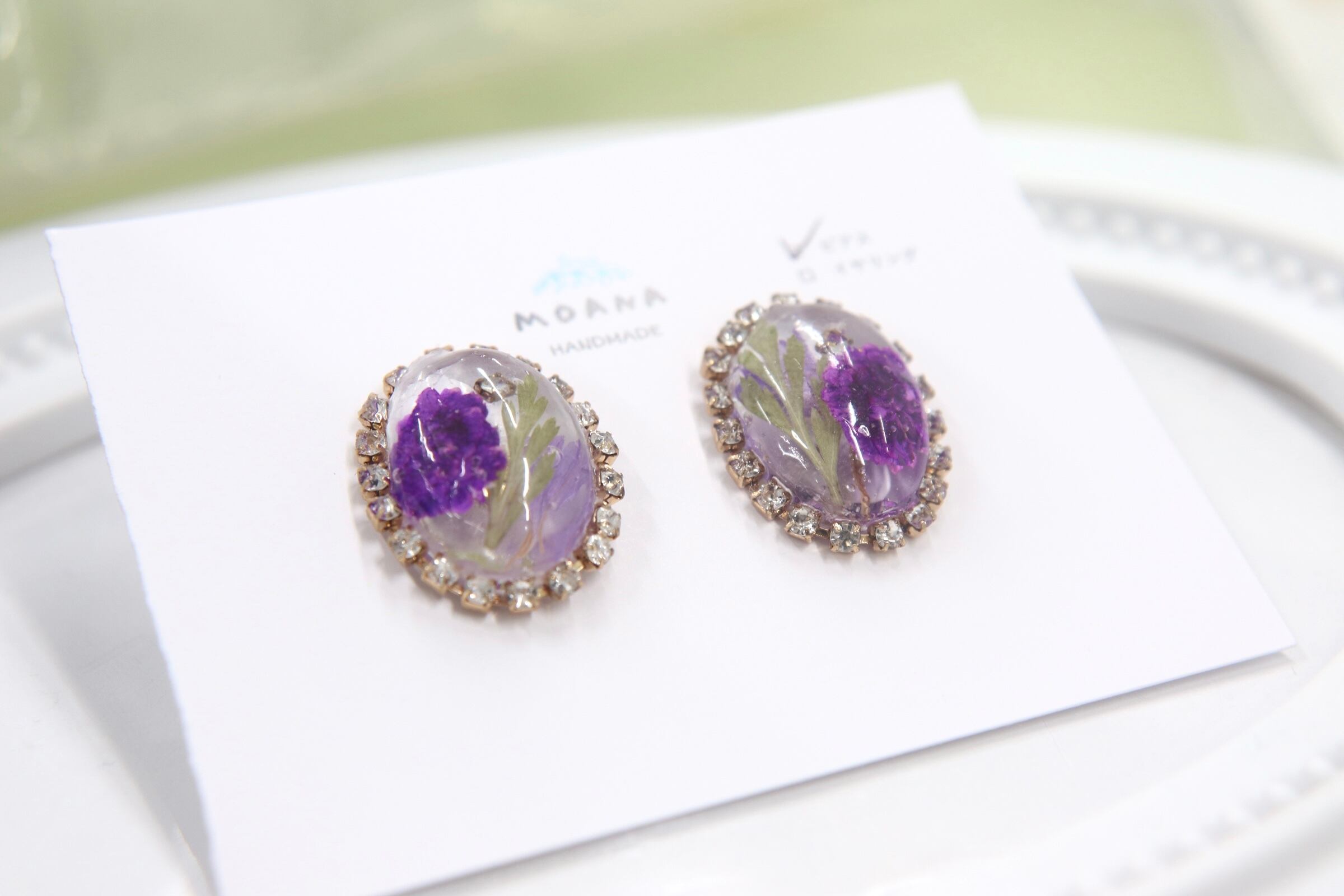 ハーブと藤の花を水で加工水晶にしたかのようなメルヘンなアクセサリーです。